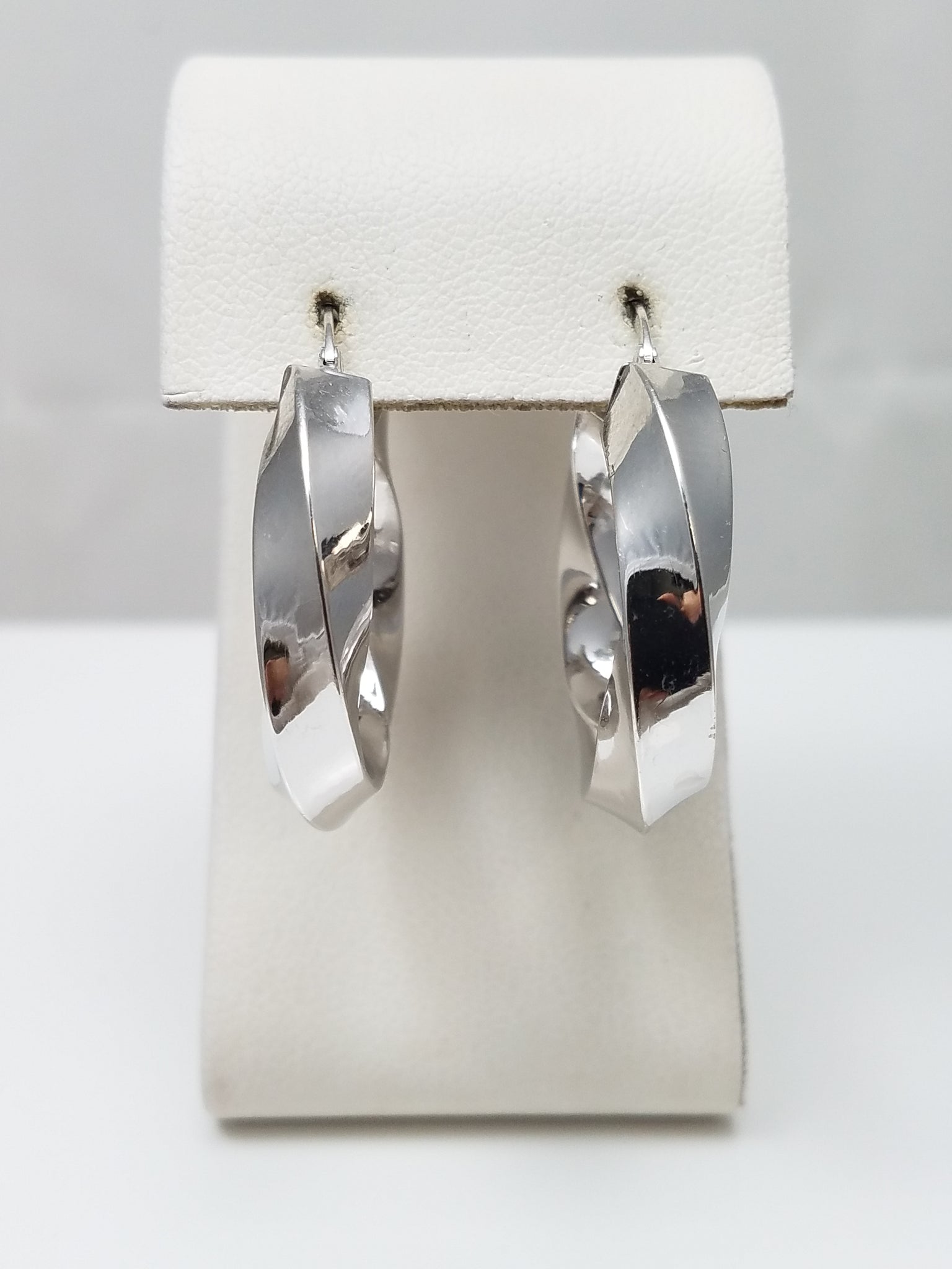 14k White Gold Twisted Hoop Earrings