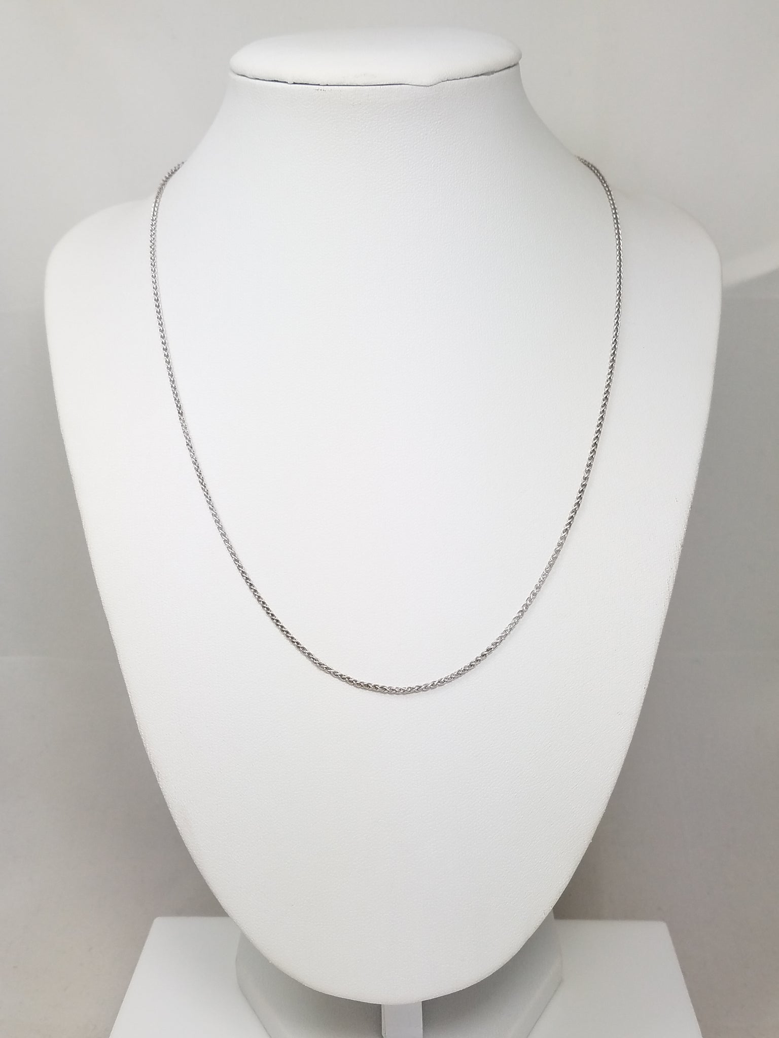 18k White Gold Solid Round Wheat Link 18" Necklace