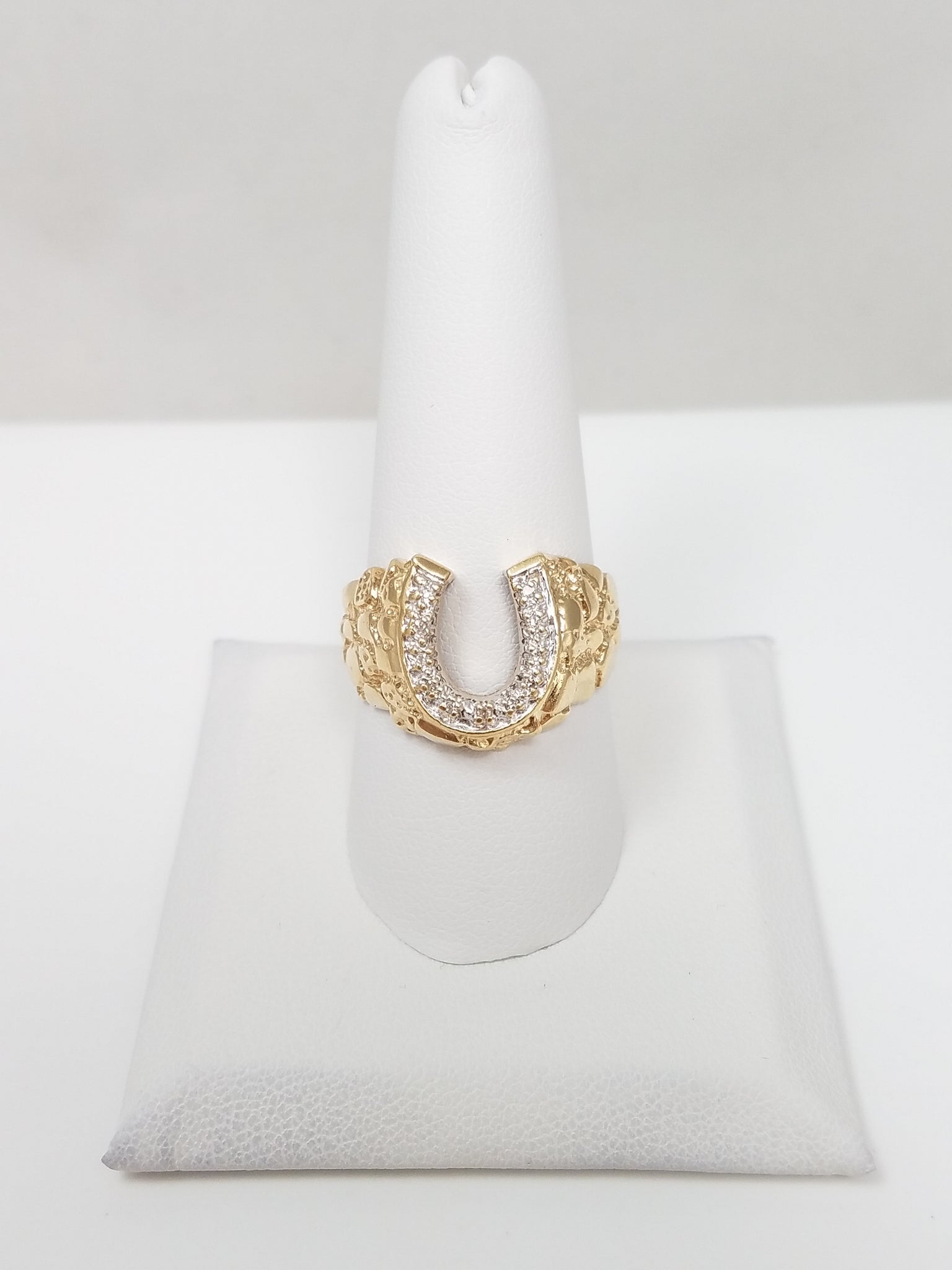 Amazing 10k Yellow Gold Natural Diamond Nugget Horseshoe Ring