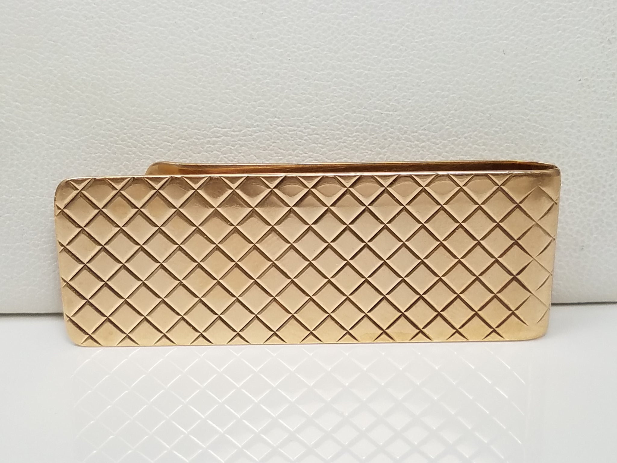 This Cartier men's vintage money clip was crafted from 14k yellow gold (stamped "14k"). This is in nice condition. It measures approximately 2" in length. Weighs 15.5 grams. It could use a polish.