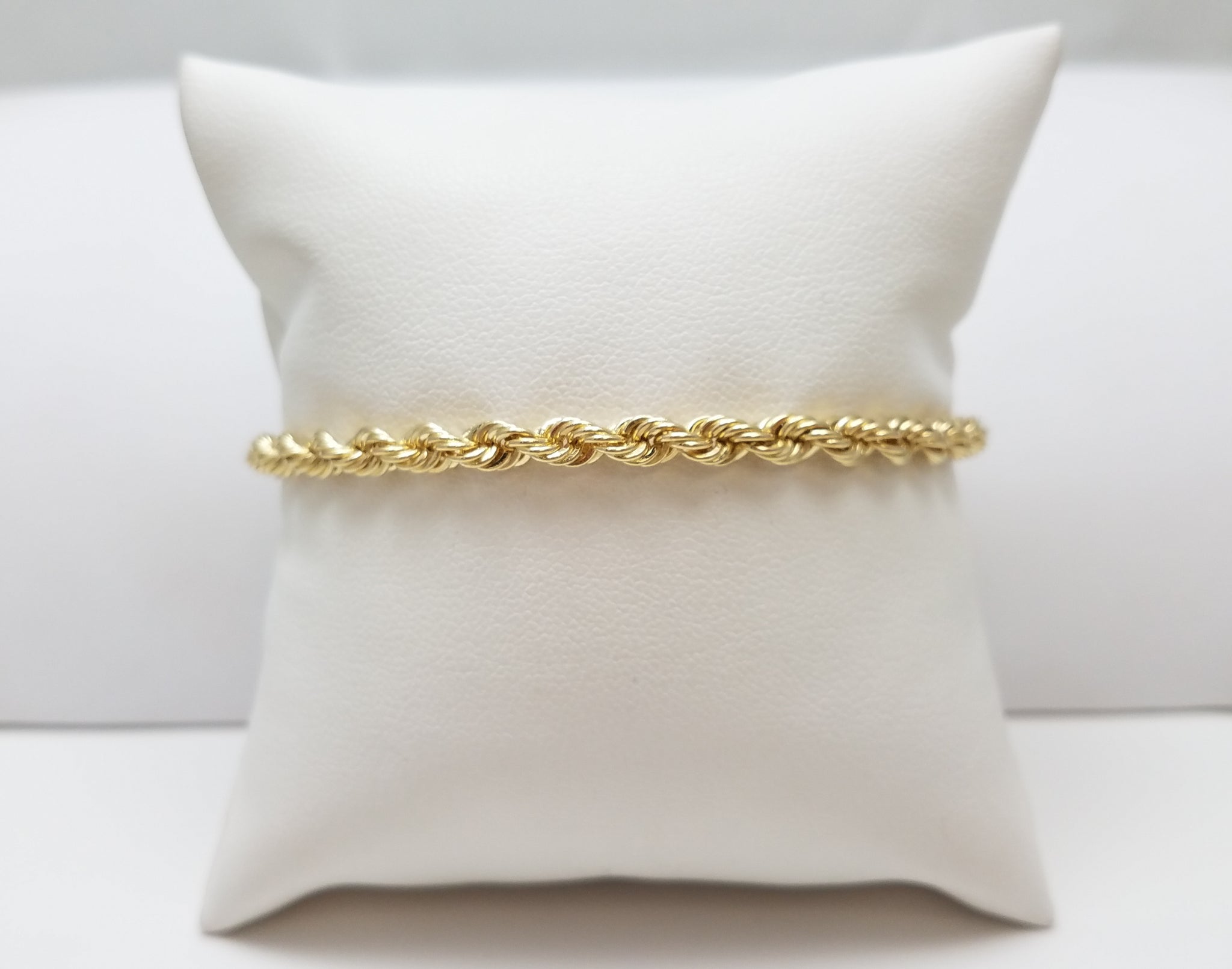 Classic 7" Solid 14k Yellow Gold Rope Chain Bracelet