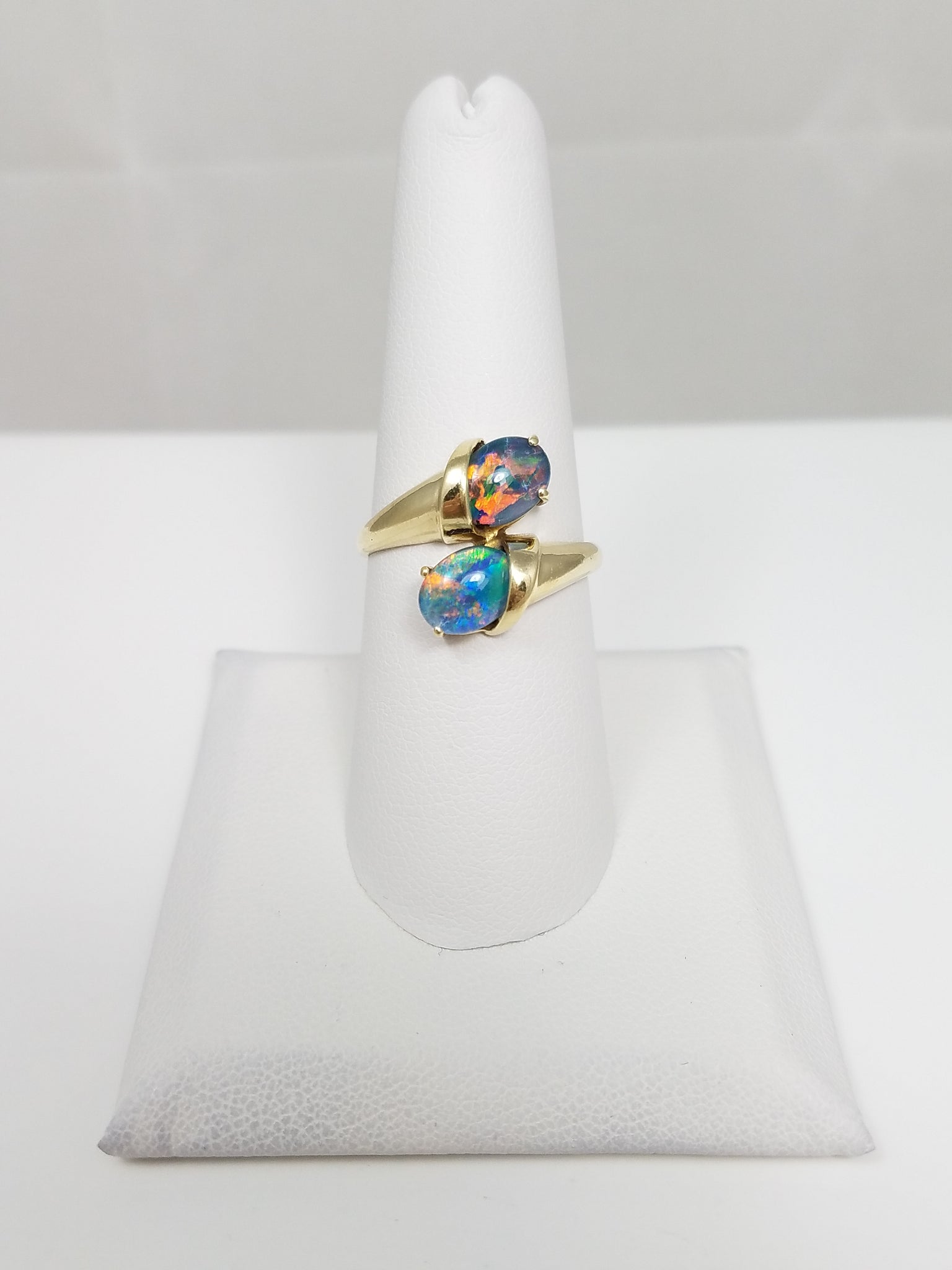 Dazzling 14k Yellow Gold Natural Opal Triplet Bypass Ring