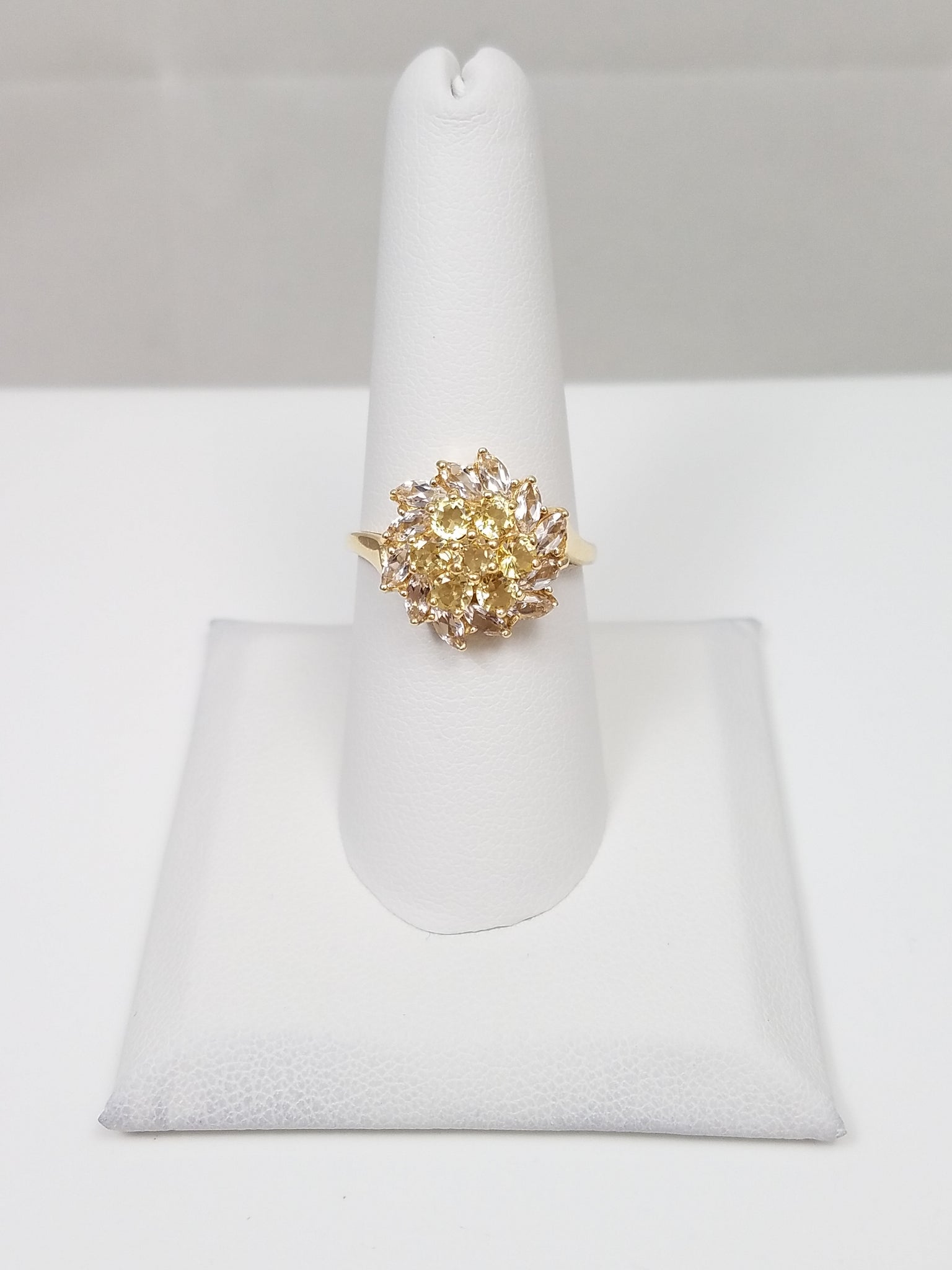 Dazzling 14k Yellow Gold Natural Quartz Cluster Ring
