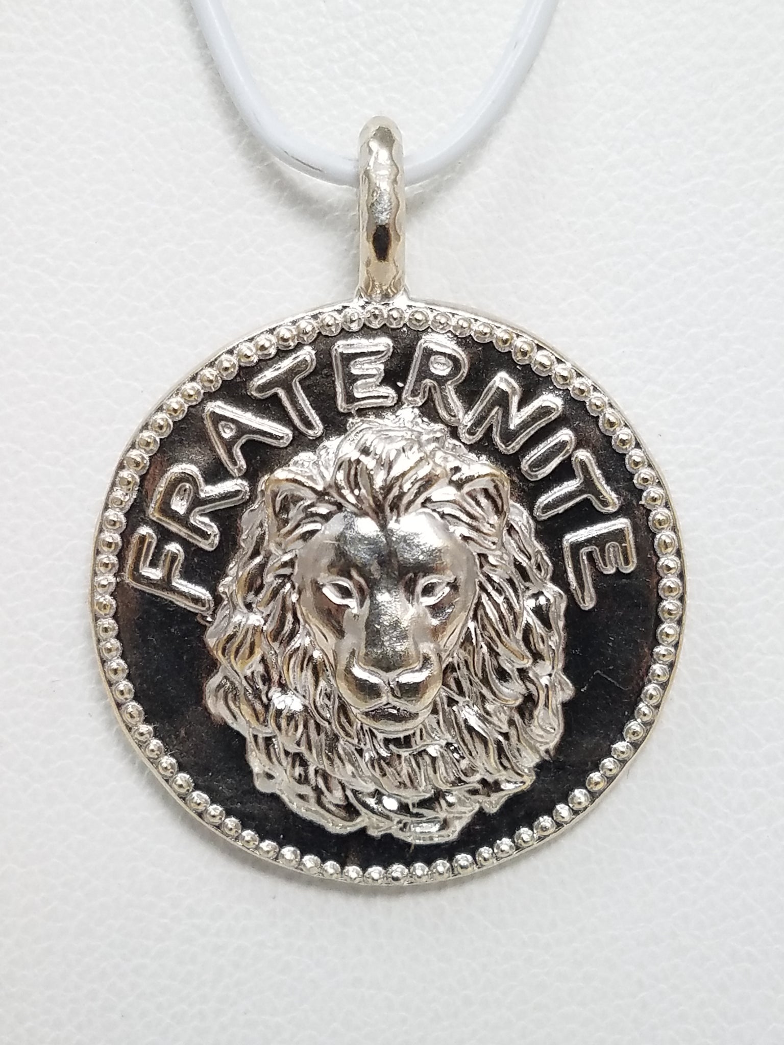 This designer (stamped) lion head pendant is intricately crafted in solid platinum. Pendant measures 25mm in diameter and weighs 20.6 grams.