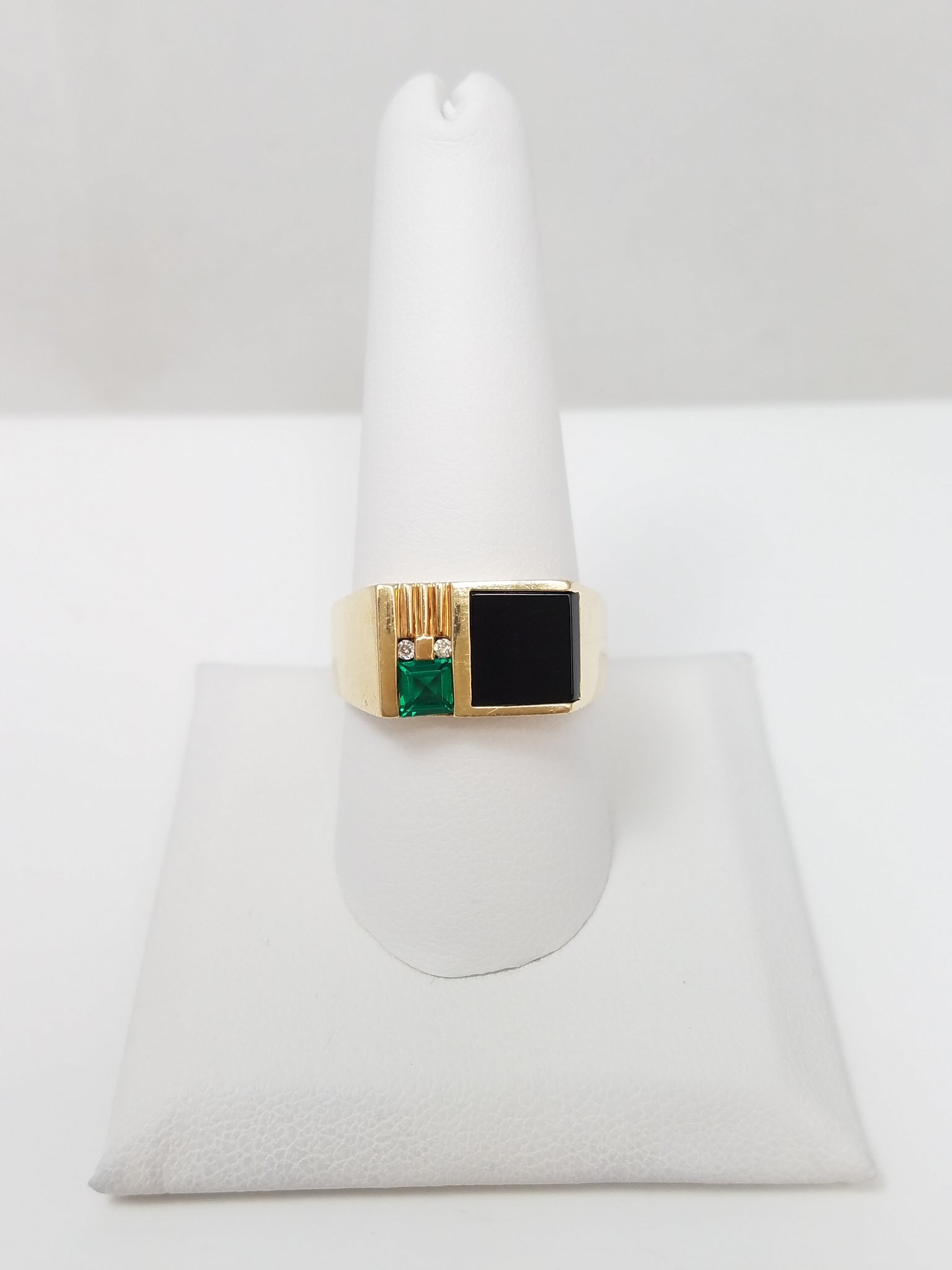 Dynamic 10k Yellow Gold Lab Created Emerald Natural Onyx Diamond Ring