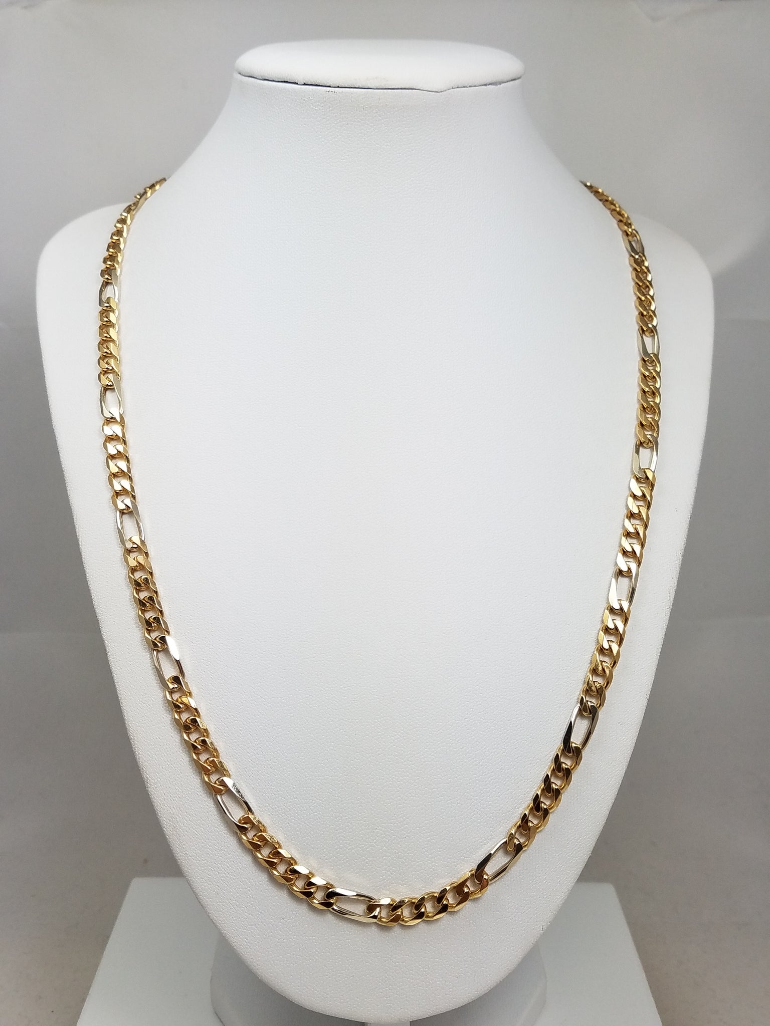 Dynamic 22" Solid 18k Two Tone Gold Figaro Link Chain Necklace