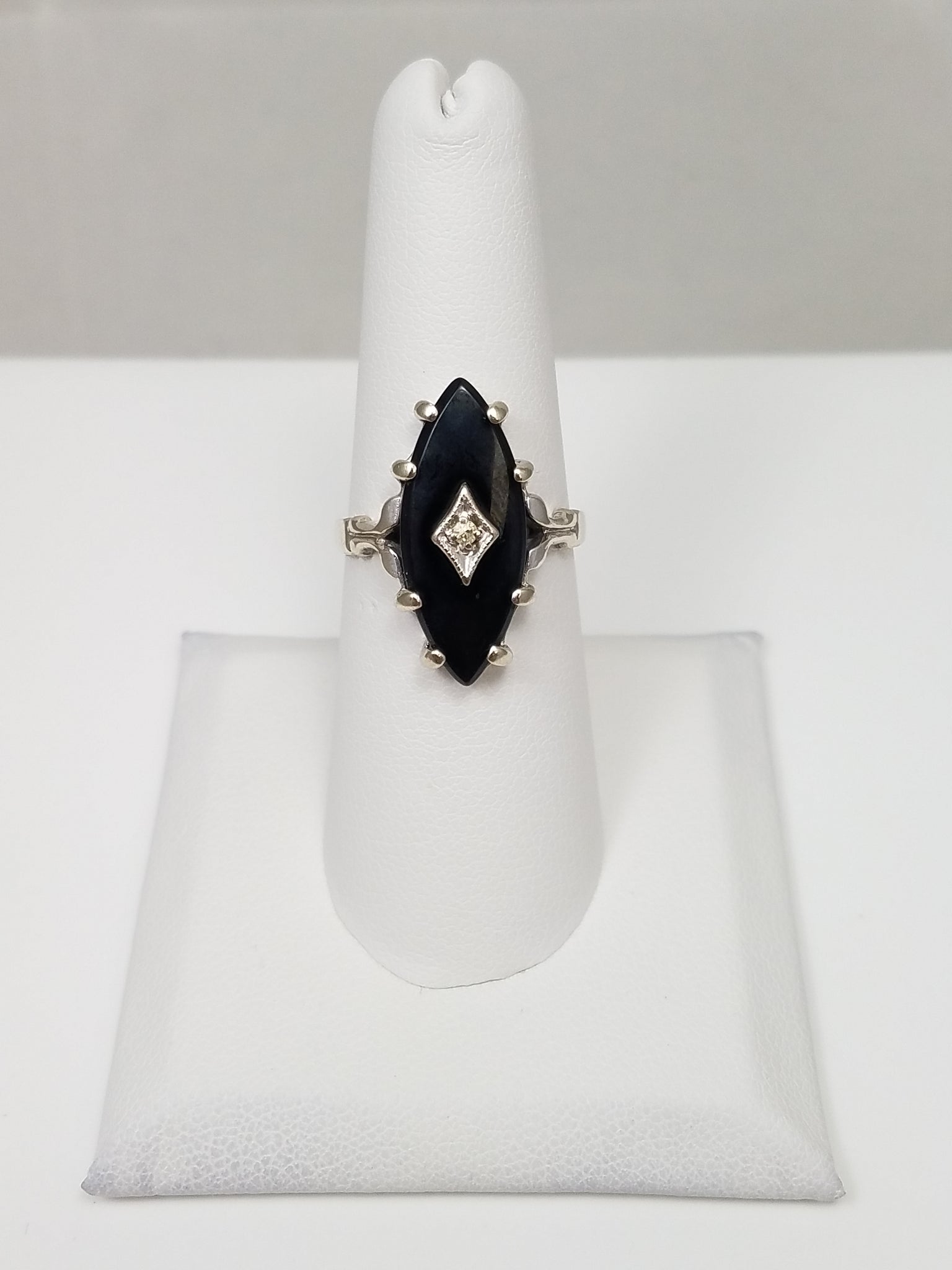 Enchanting Vintage 10k White Gold Natural Onyx Diamond Ring
