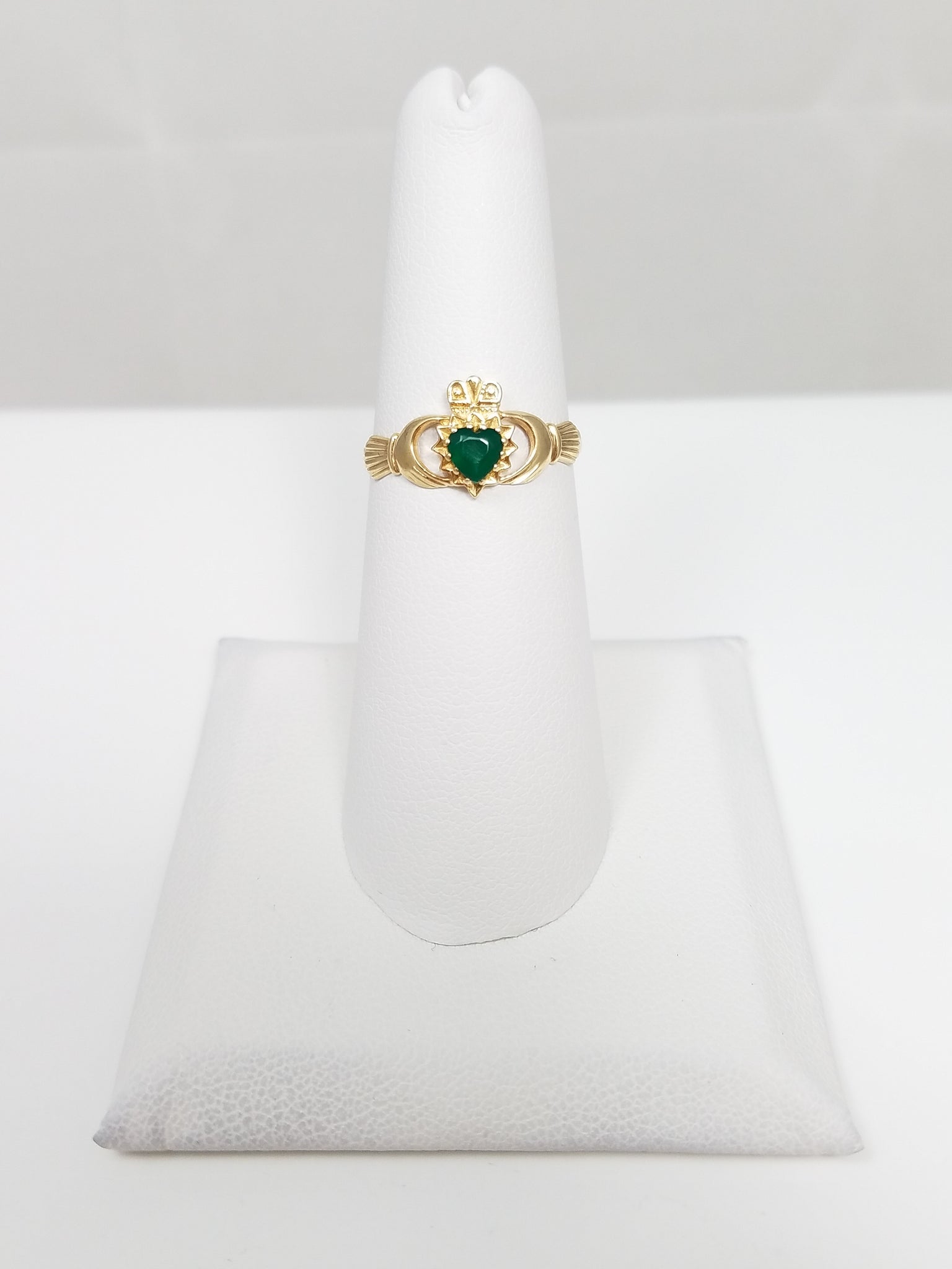 Green Dyed Onyx Claddagh Ring in 9k Yellow Gold