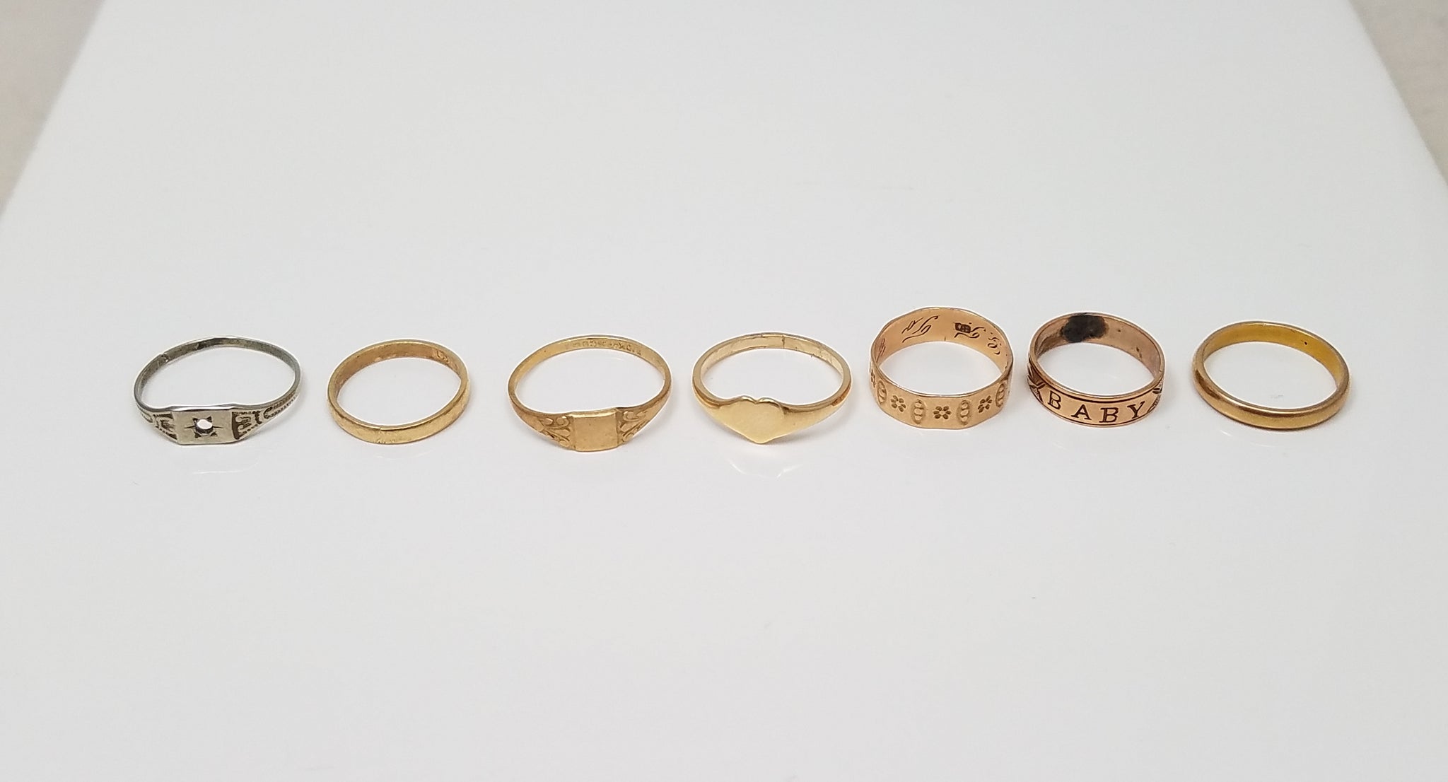 Lot of Seven Vintage 10k Gold Baby/Child Rings