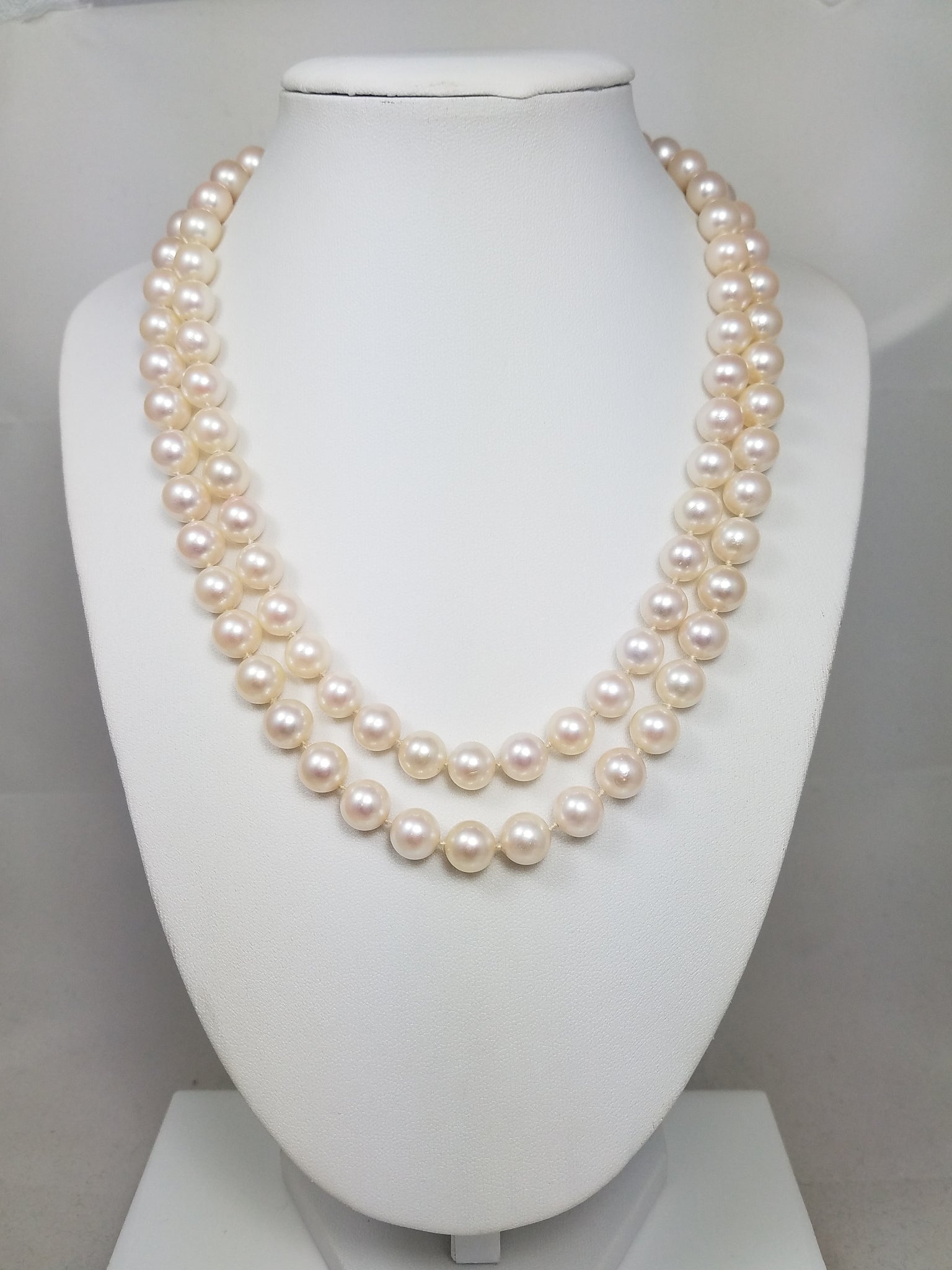 Cultured south sea pearls measuring approximately 8.5mm in diameter and 36" in length. Turn it into two strands if you choose. June Birthstone!