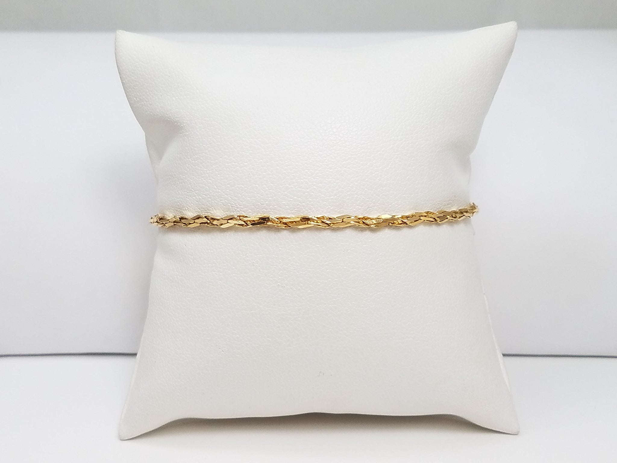 This jazzy solid fancy link bracelet was crafted from 14k yellow gold (stamped "14k"). It measures 2.2mm wide and 7" in length and is secured with a spring ring clasp for wear. It weighs 2.8 grams.