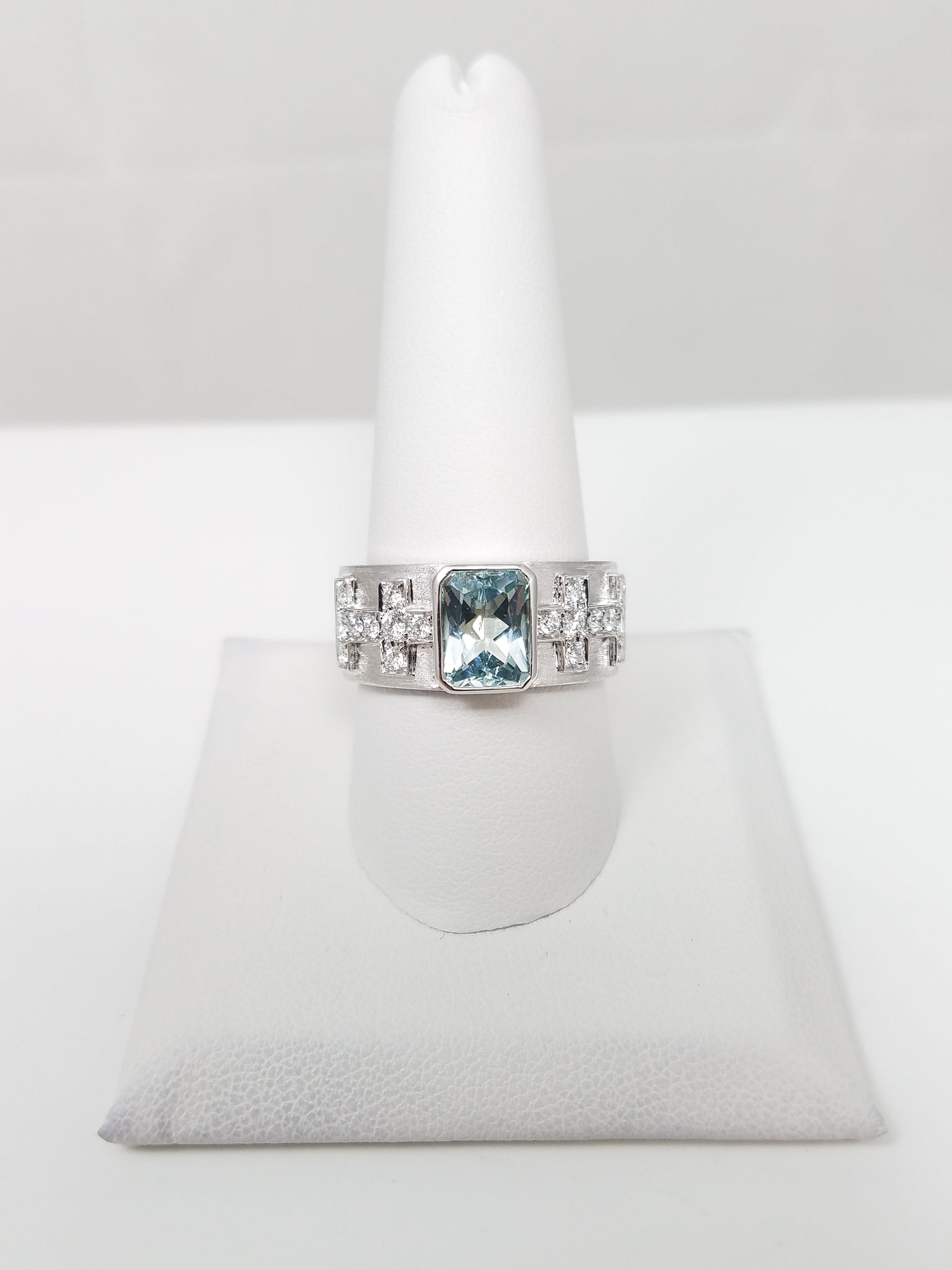 New! Dynamic 18k White Gold Natural Aquamarine Diamond Custom Ring