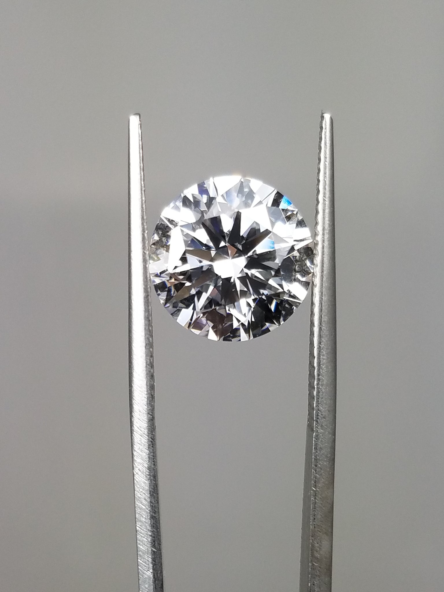 This NEW IGI certified lab grown round brilliant diamond weighs 4.10ct, measuring 10.27 x 10.31 x 6.32mm. The diamond is VVS2 in clarity and E in color. Certificate # 696566957.