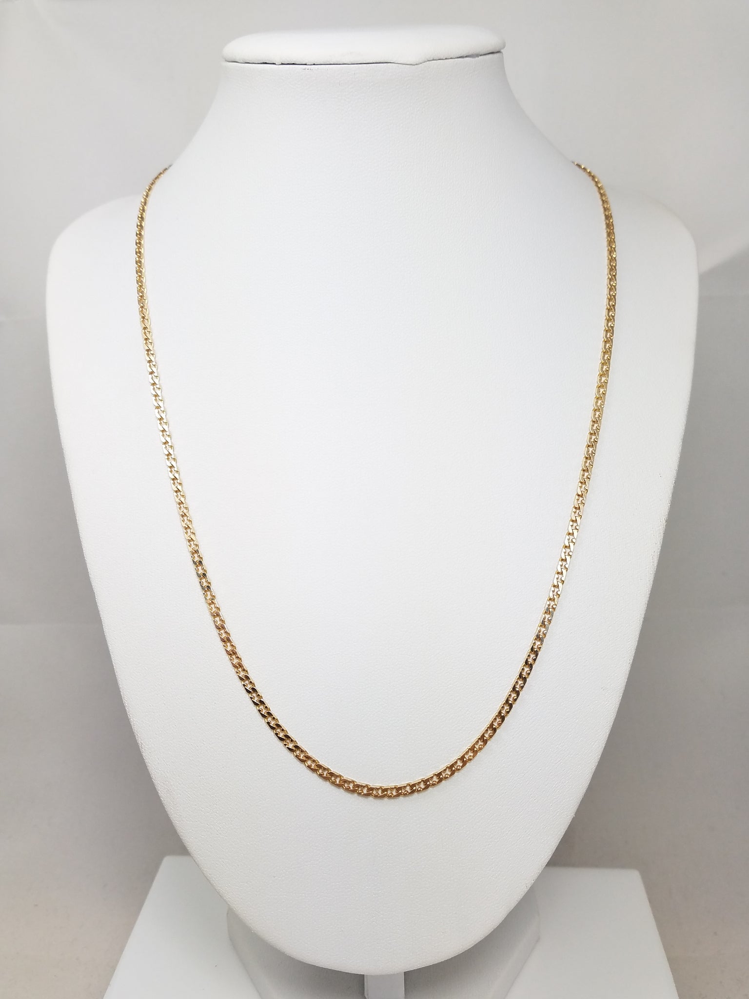 This unique solid fancy link chain necklace is made from 14k yellow gold (stamped). Measures 2.6mm wide. Weighs 10.6 grams. Secures with a lobster clasp.