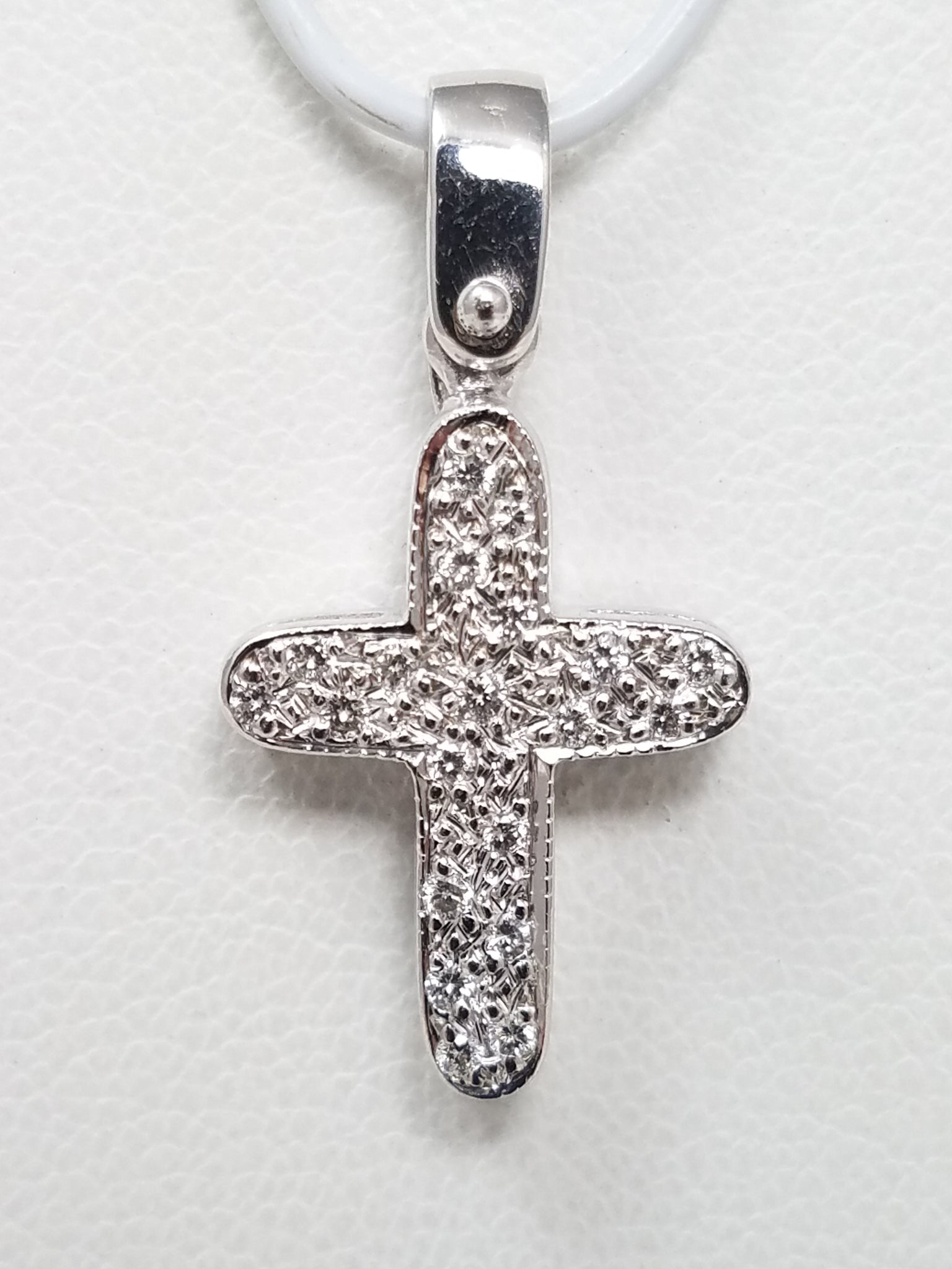 Petite 18k White Gold Natural Diamond Cross Pendant