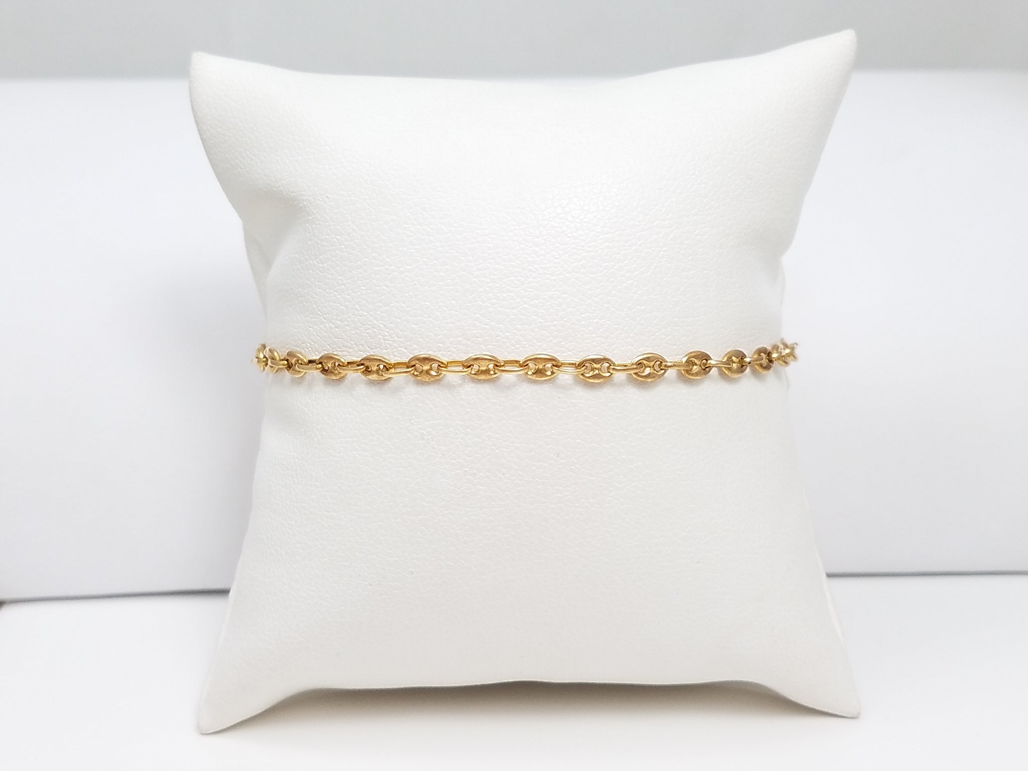 This attractive puff link bracelet was crafted from 14k yellow gold (stamped "585"). It measures 3.1mm wide and 7.25" in length and is secured with a spring ring clasp for wear. It weighs 3.6 grams.