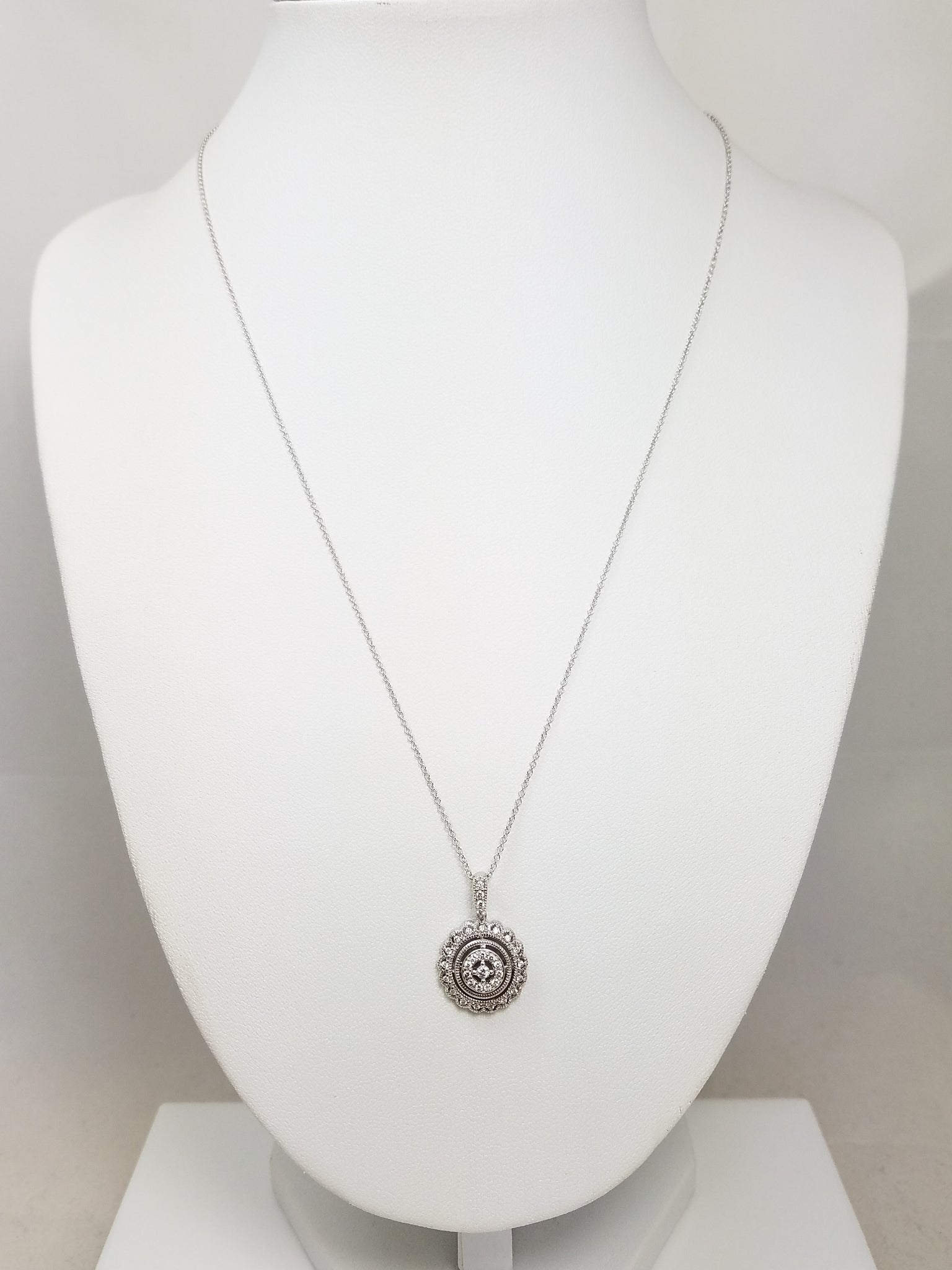 Scintillating 18" 18k White Gold Natural Diamond Circle Pendant Necklace
