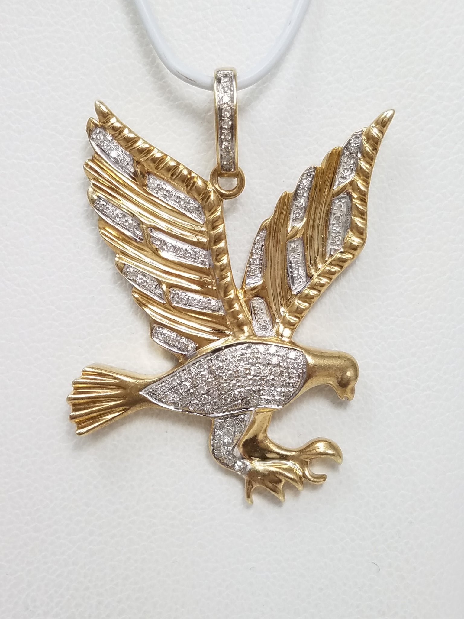 Soar Like An Eagle Shimmering 10k Two Tone Gold Natural Diamond Eagle Pendant