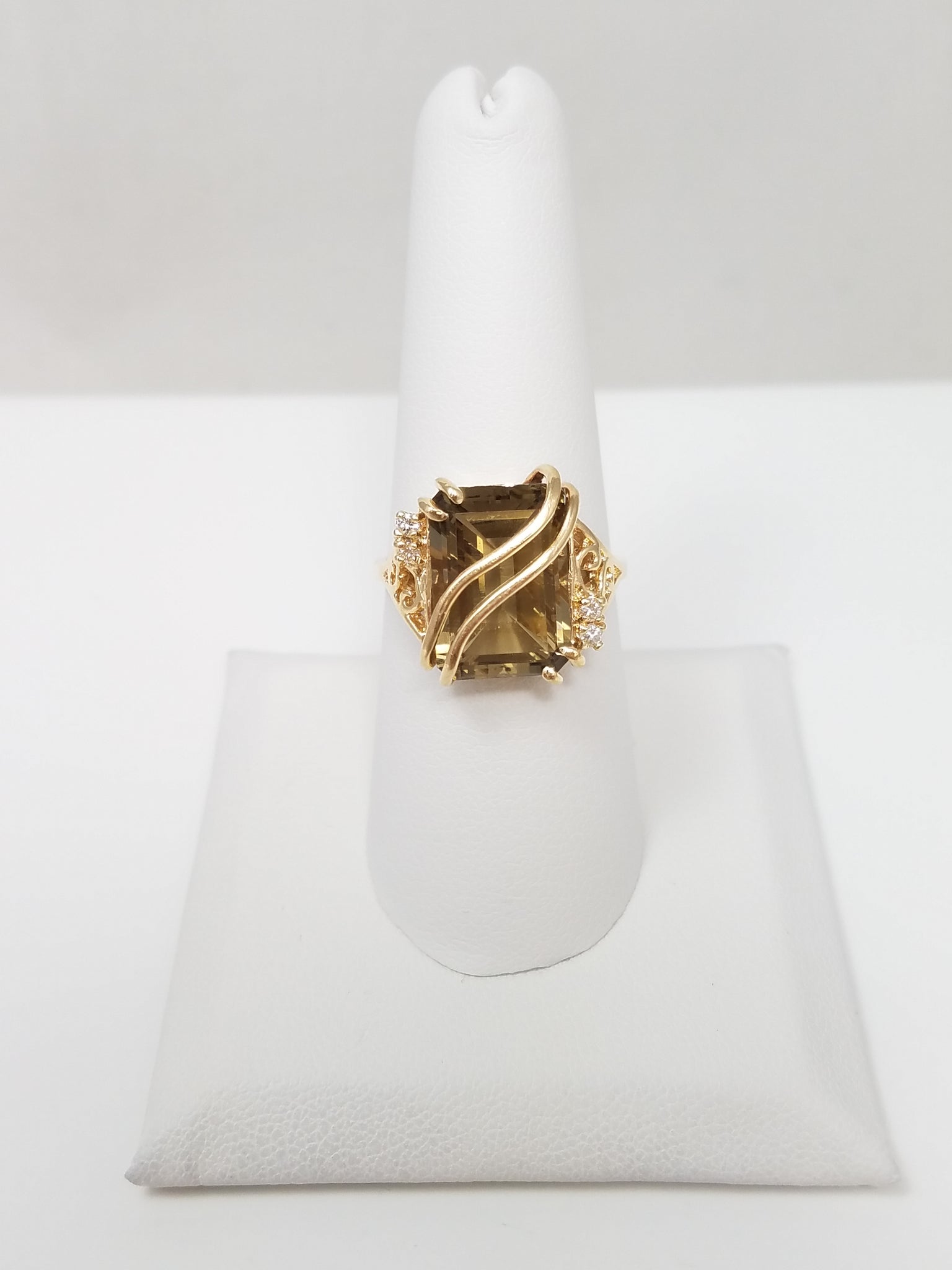 Sophisticated 14k Yellow Gold Natural Quartz Diamond Ring