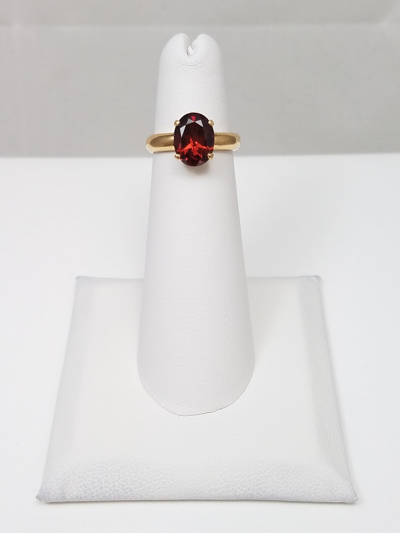 Stylish 14k Yellow Gold Natural Garnet Solitaire Ring