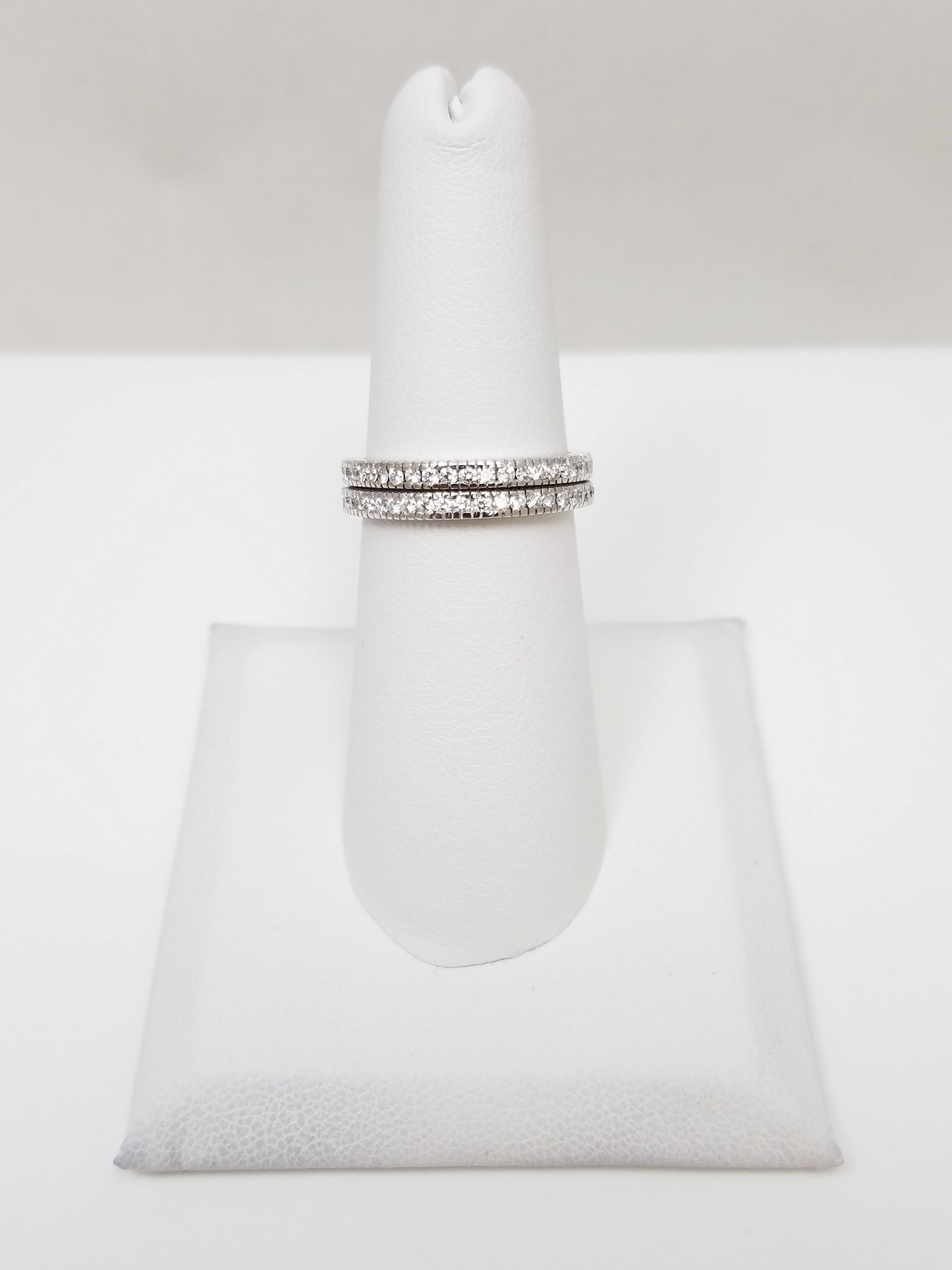 Two Matching Hidalgo 18k White Gold Natural Diamond Anniversary Ring Bands